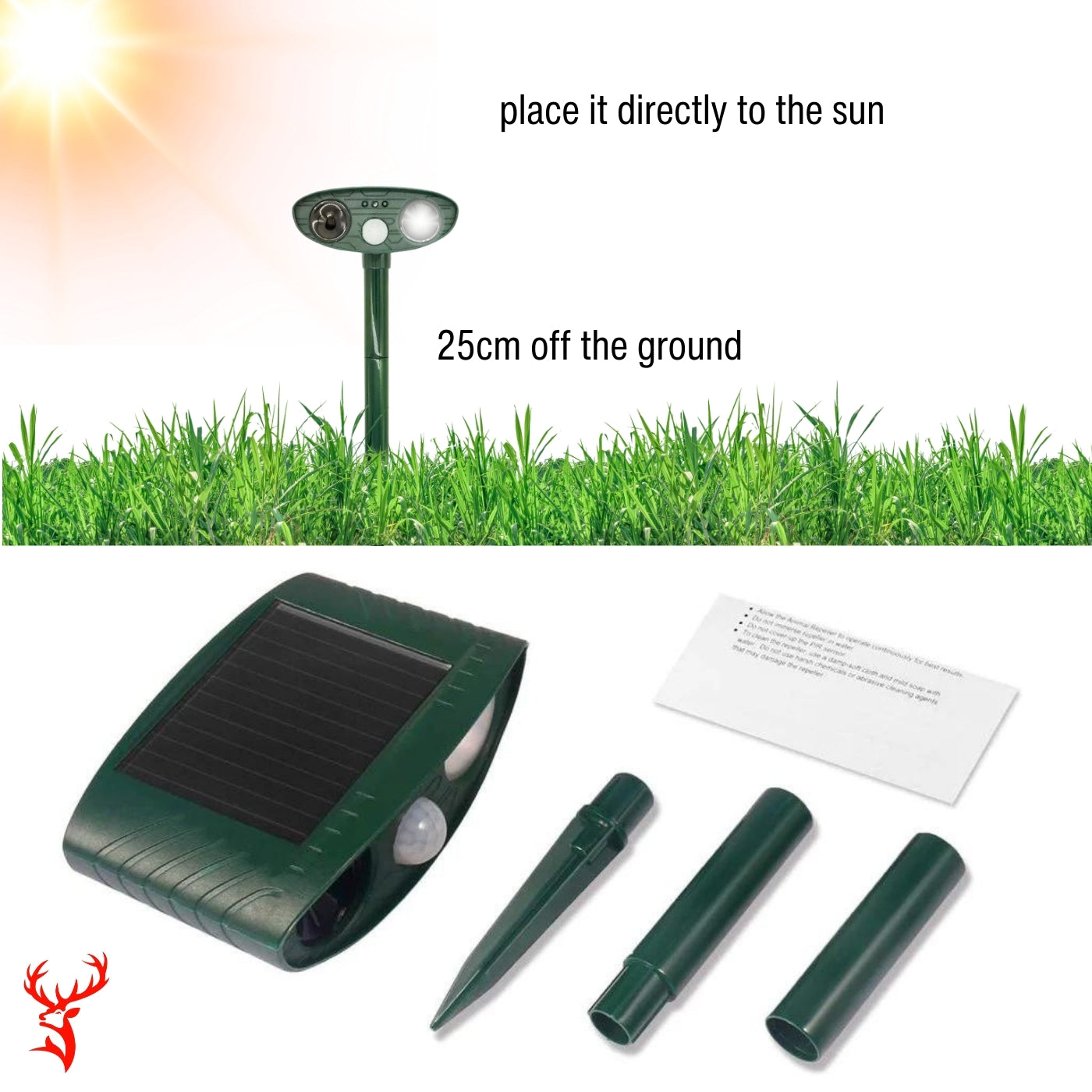 1️⃣ Place the device near gardens, trees, or pathways deer use to access your yard.