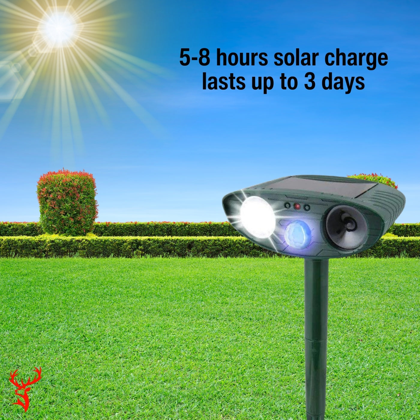 Tired of deer eating your plants and damaging your yard? Sonic Fortress Pro is a smart, solar-powered solution that keeps deer away without chemicals, traps, or fences. Using motion-activated sound and flashing lights, it safely discourages deer from entering your space-so you can enjoy a beautiful, protected garden with zero hassle.