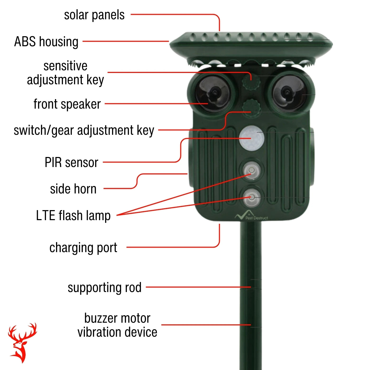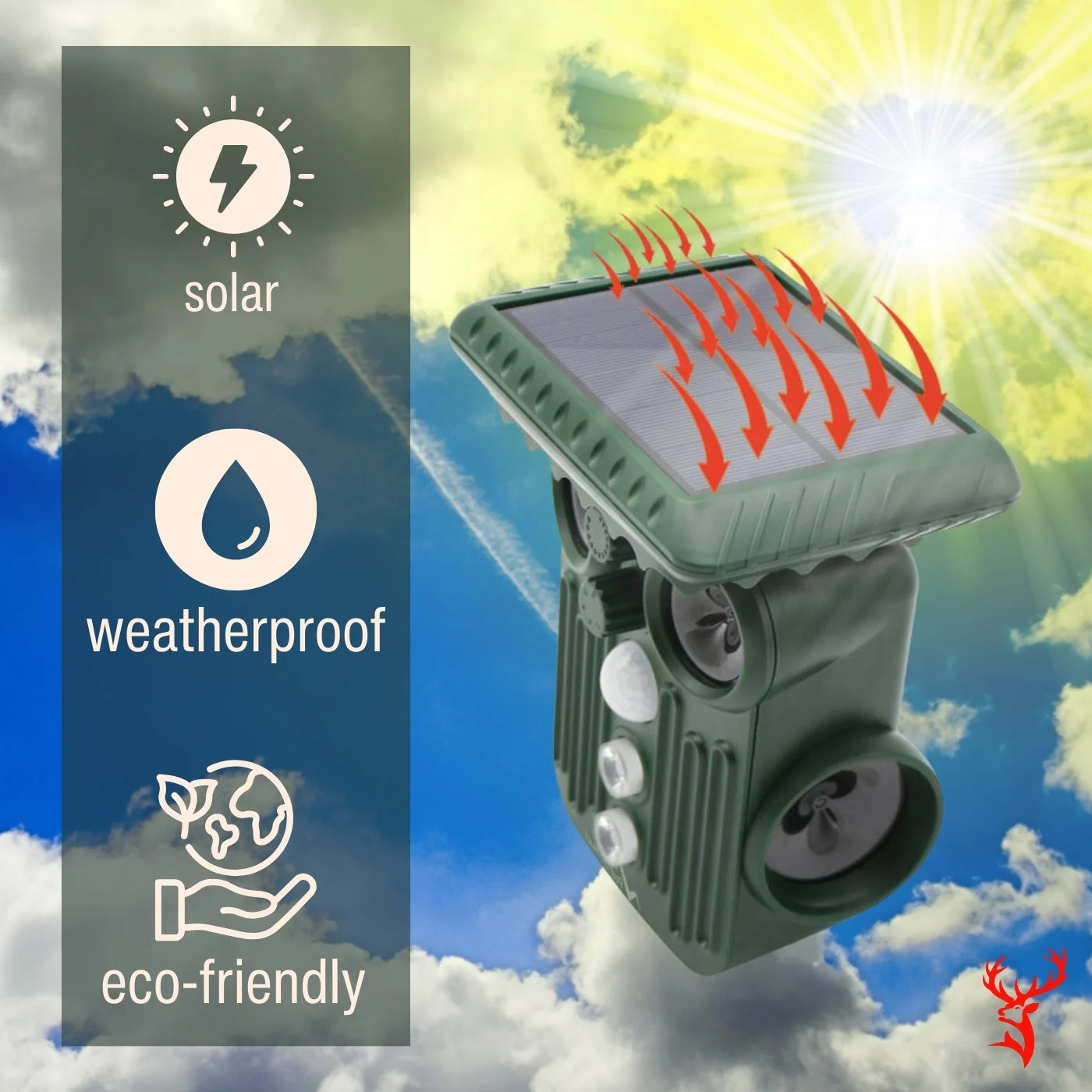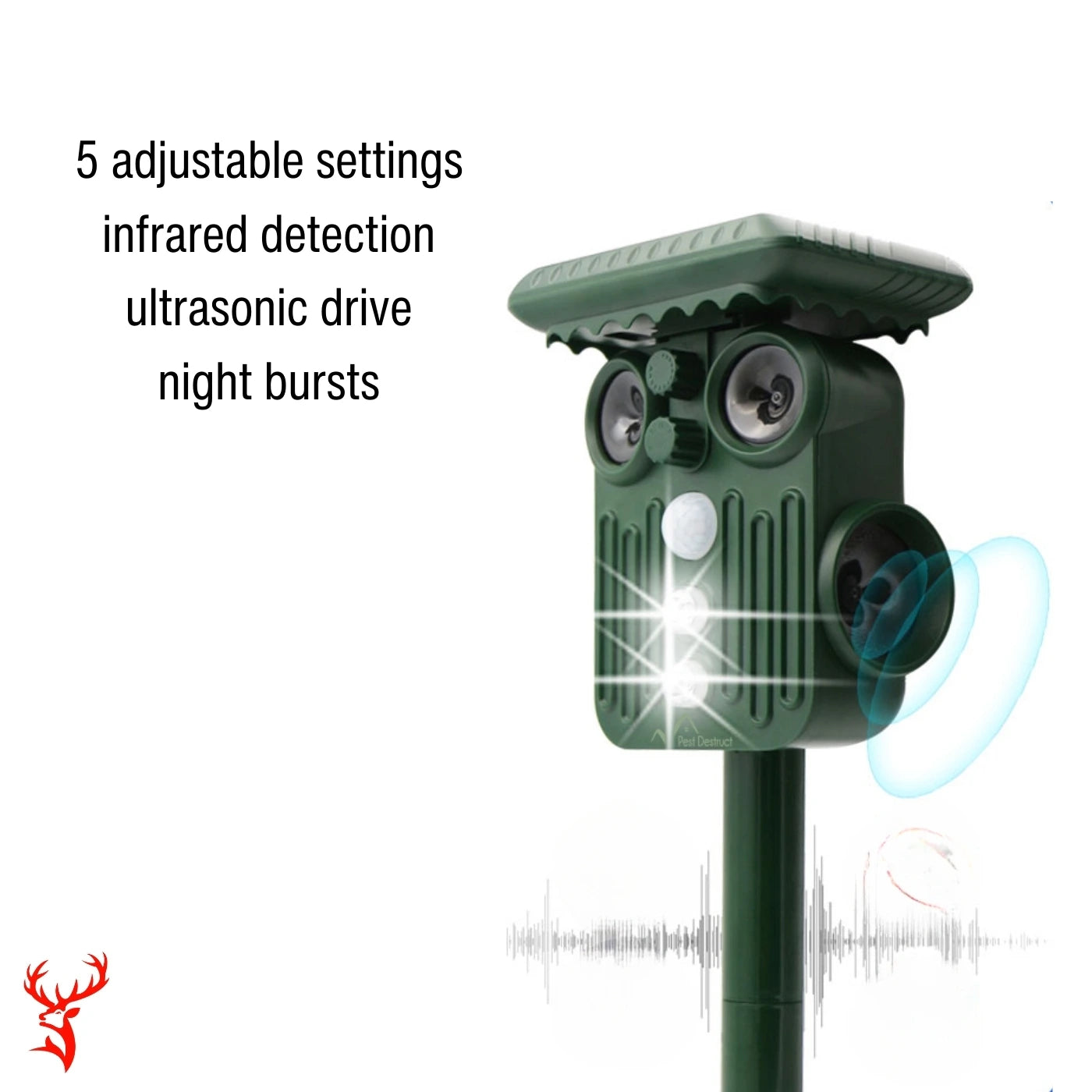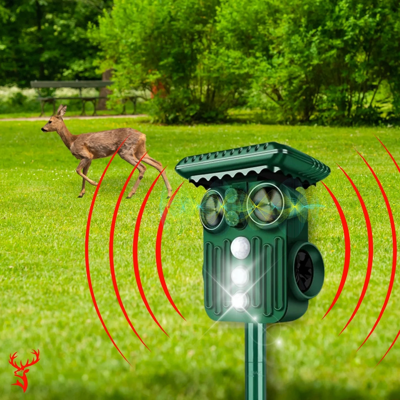 2️⃣ Emits Targeted Ultrasound – High-frequency sound waves deter deer and other pests instantly.